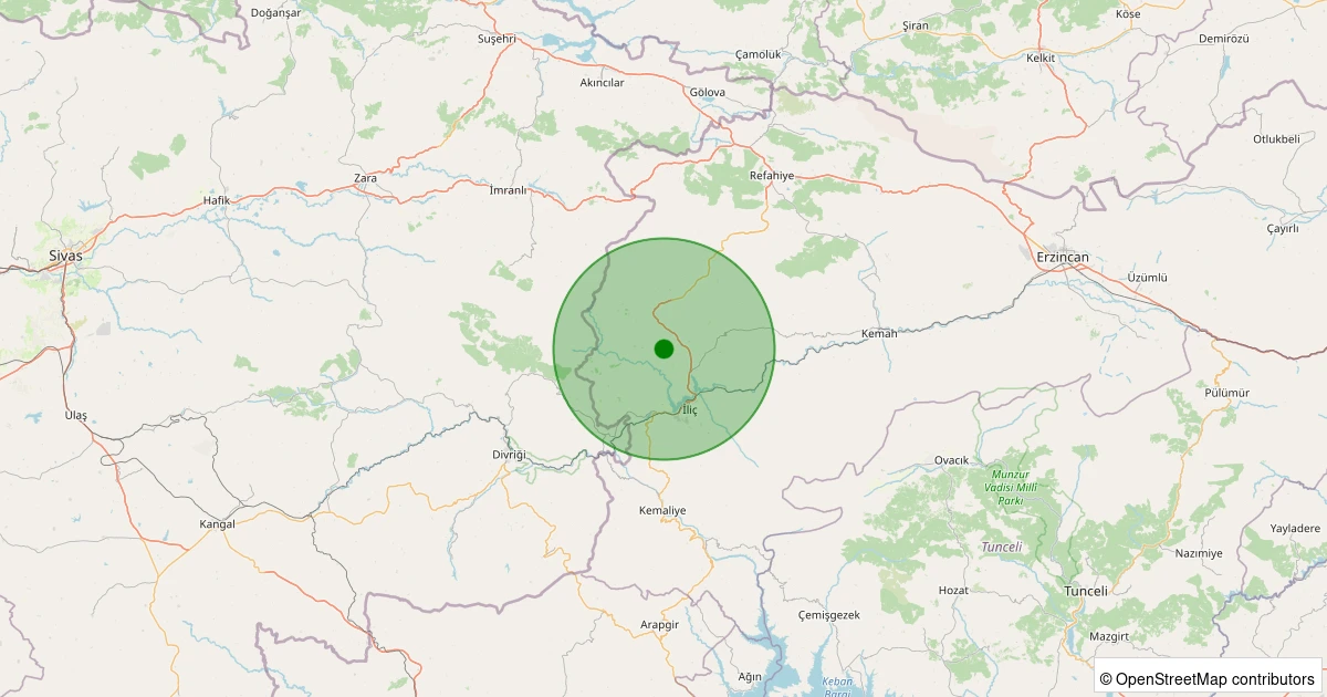 Son 7 gün içinde İliç - Doruksaray Köyü noktasından 100 km yarıçap içerisinde meydana gelen diğer depremler: