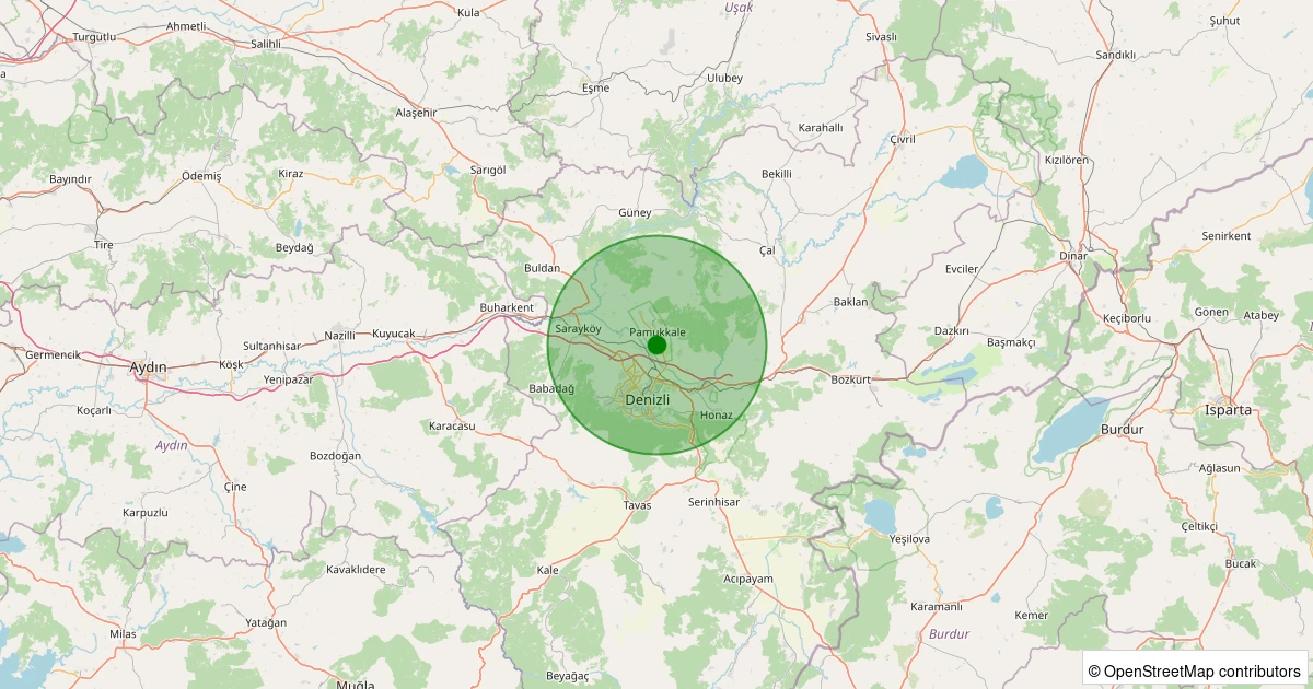 Son 7 gün içinde Pamukkale - Yeniköy Köyü noktasından 100 km yarıçap içerisinde meydana gelen diğer depremler: