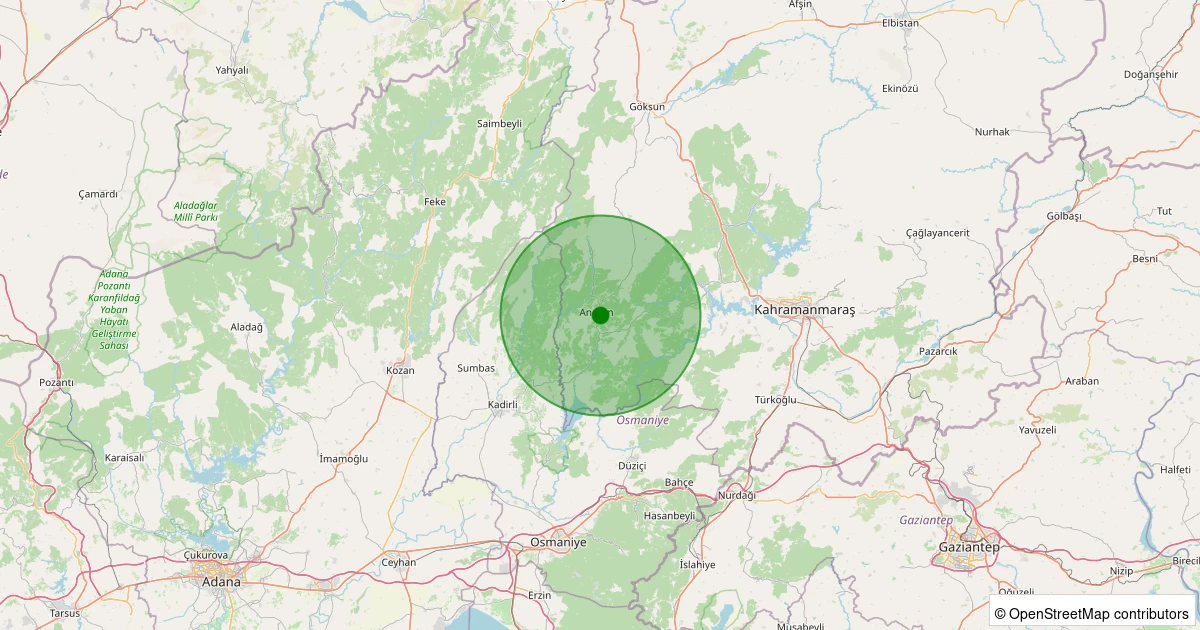 Son 7 gün içinde Andırın - Tufanpaşa noktasından 100 km yarıçap içerisinde meydana gelen diğer depremler:
