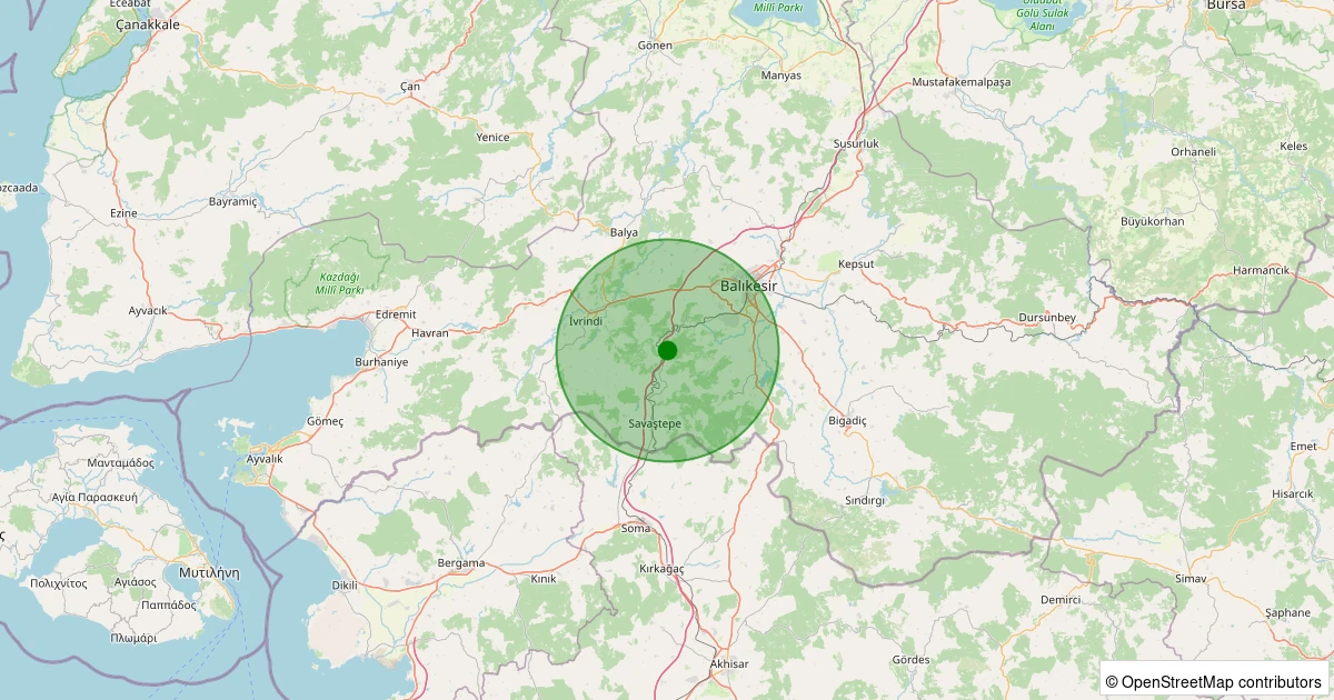 Son 7 gün içinde Savaştepe - Yunakdere noktasından 100 km yarıçap içerisinde meydana gelen diğer depremler: