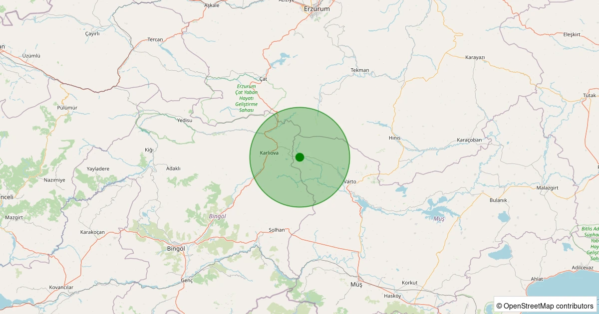 Son 7 gün içinde Varto - Onpınar Köyü noktasından 100 km yarıçap içerisinde meydana gelen diğer depremler: