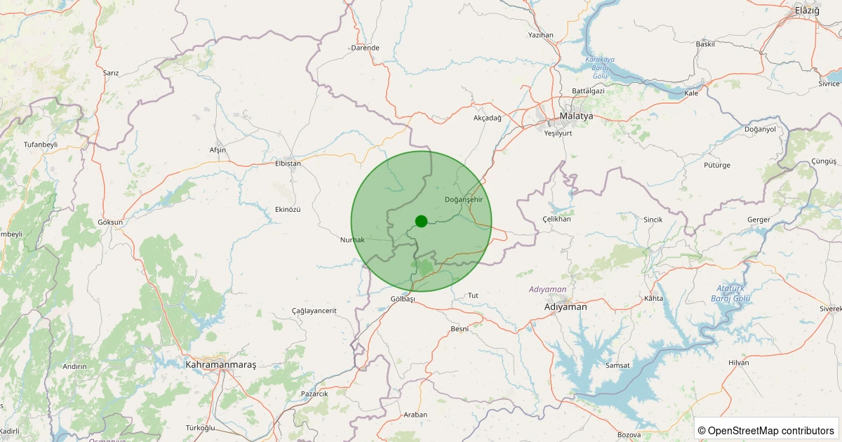 Son 7 gün içinde Doğanşehir - Küçüklü noktasından 100 km yarıçap içerisinde meydana gelen diğer depremler: