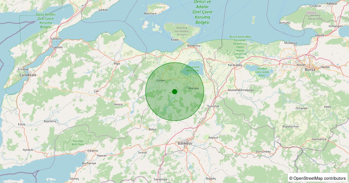 Son 7 gün içinde Gönen - Kalburcu noktasından 100 km yarıçap içerisinde meydana gelen diğer depremler: