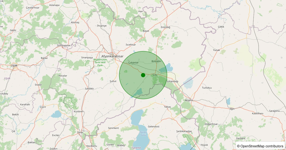 Son 7 gün içinde Çay - Karamık Karacaören Köyü noktasından 100 km yarıçap içerisinde meydana gelen diğer depremler: