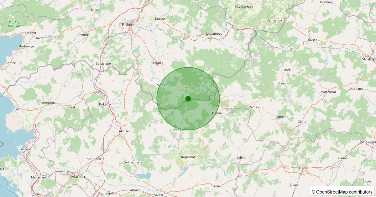 Son 7 gün içinde Sındırgı - Yaylabayır noktasından 100 km yarıçap içerisinde meydana gelen diğer depremler: