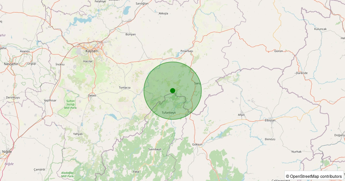 Son 7 gün içinde Sarız - Değirmentaş Köyü noktasından 100 km yarıçap içerisinde meydana gelen diğer depremler:
