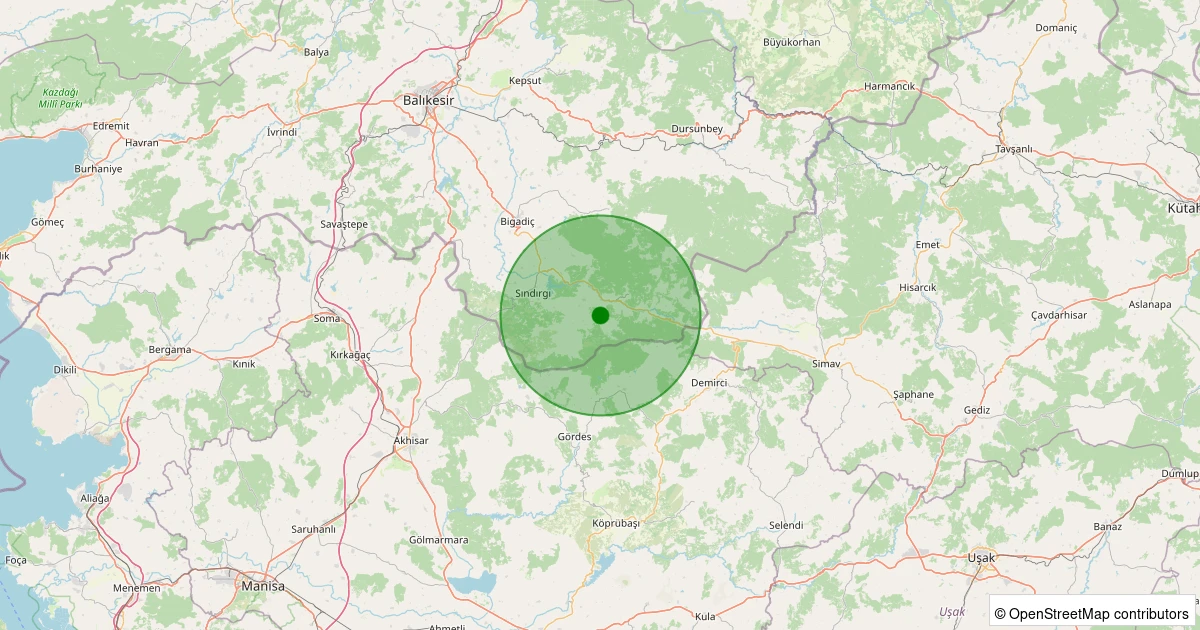 Son 7 gün içinde Sındırgı - Büyükdağdere noktasından 100 km yarıçap içerisinde meydana gelen diğer depremler: