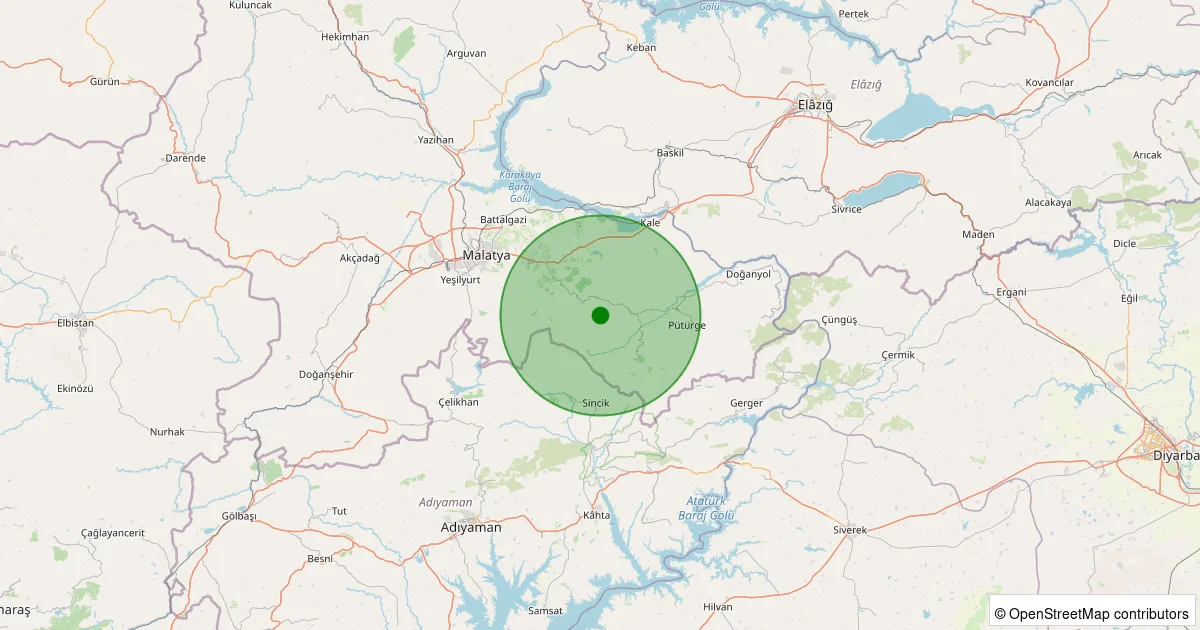 Son 7 gün içinde Pütürge noktasından 100 km yarıçap içerisinde meydana gelen diğer depremler: