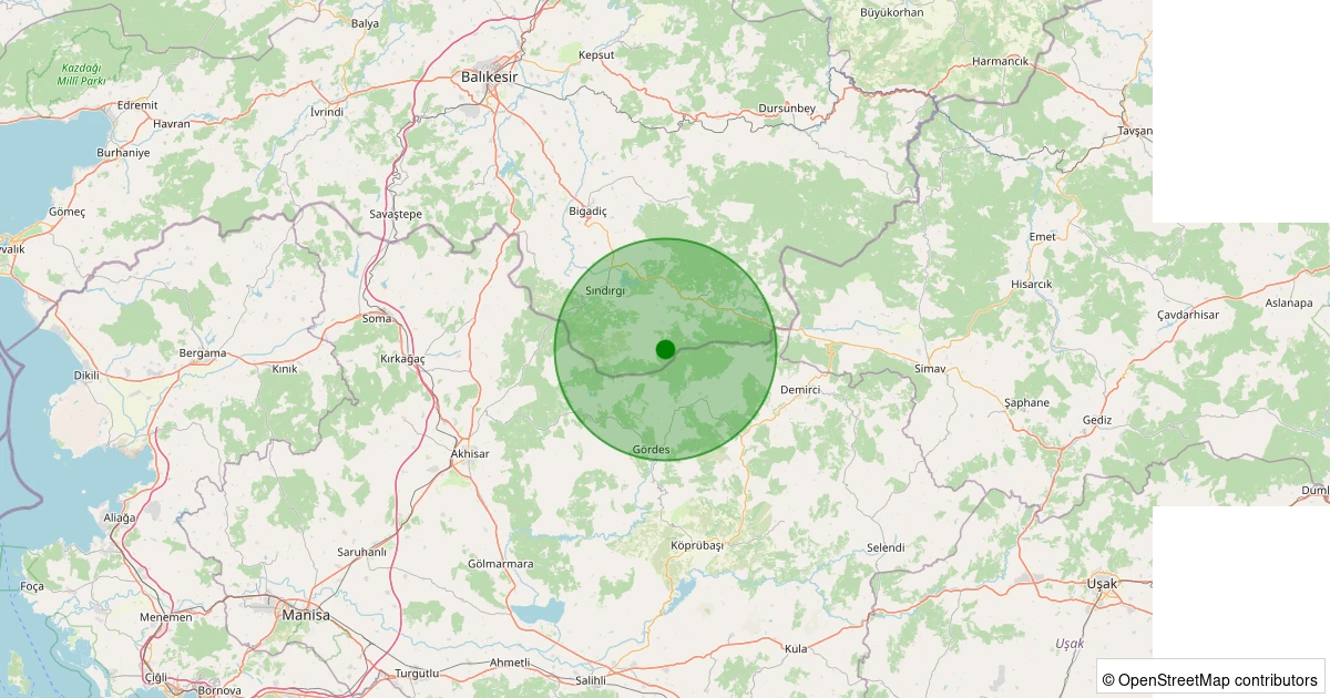 Son 7 gün içinde Sındırgı - Yüreğil/Merkez noktasından 100 km yarıçap içerisinde meydana gelen diğer depremler: