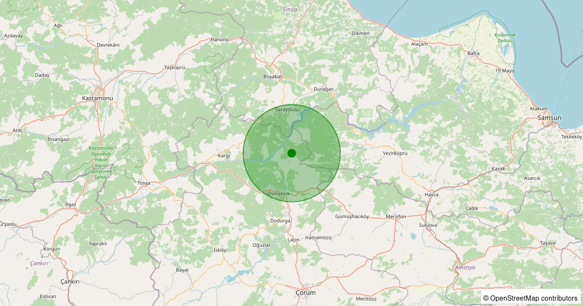 Son 7 gün içinde Osmancık - Avlağı Köyü noktasından 100 km yarıçap içerisinde meydana gelen diğer depremler: