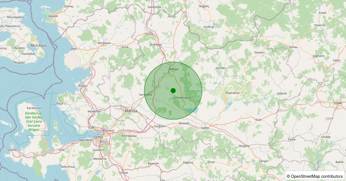Son 7 gün içinde Gölmarmara - Tiyenli noktasından 100 km yarıçap içerisinde meydana gelen diğer depremler: