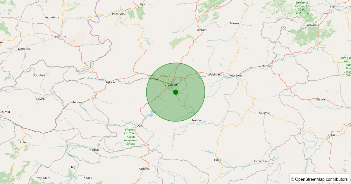 Son 7 gün içinde Palandöken - Maksutefendi noktasından 100 km yarıçap içerisinde meydana gelen diğer depremler:
