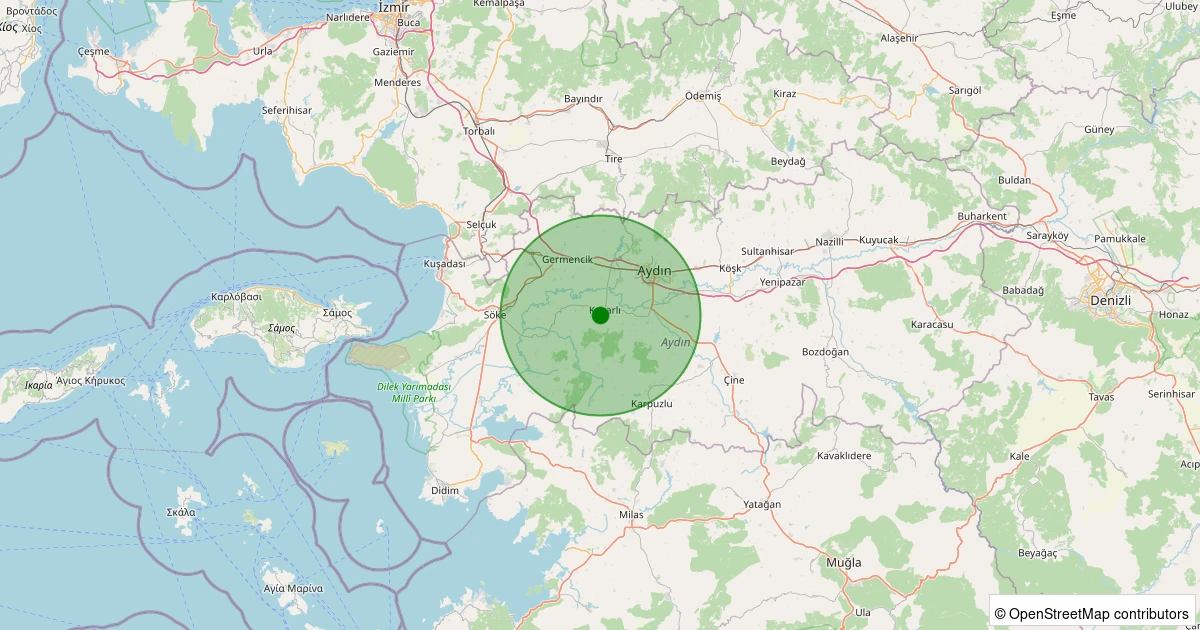 Son 7 gün içinde Koçarlı - Büyükdere noktasından 100 km yarıçap içerisinde meydana gelen diğer depremler: