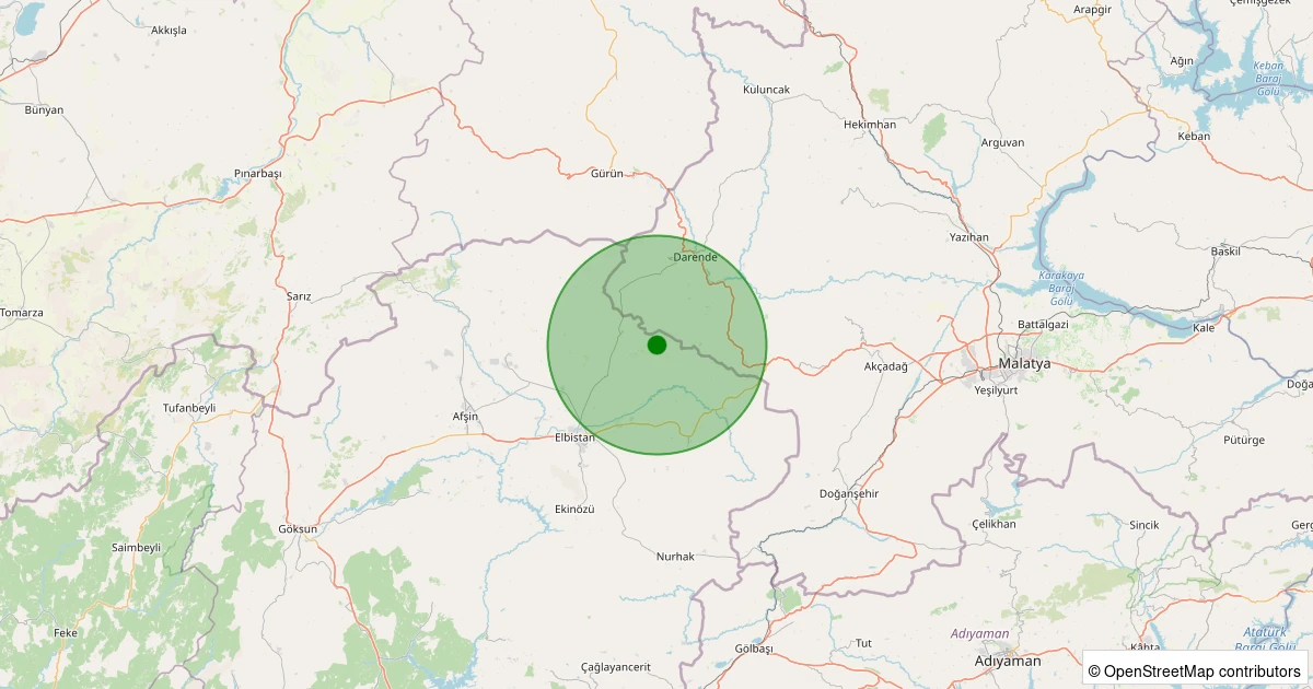 Son 7 gün içinde Elbistan - Yalıntaş Köyü noktasından 100 km yarıçap içerisinde meydana gelen diğer depremler: