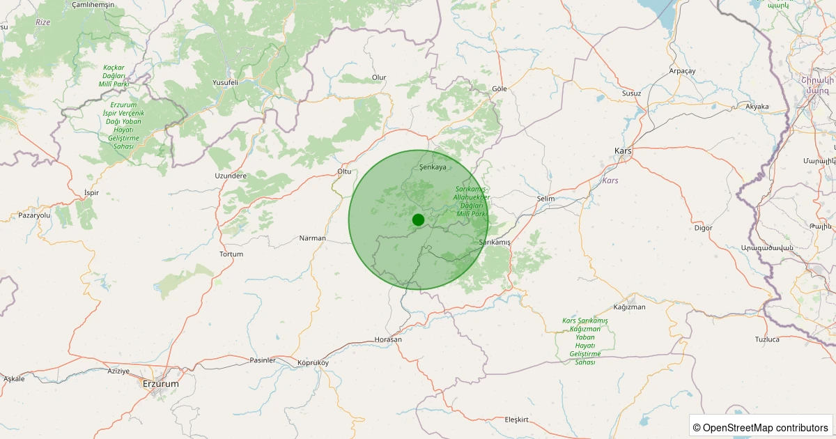 Son 7 gün içinde Şenkaya - Gözebaşı noktasından 100 km yarıçap içerisinde meydana gelen diğer depremler: