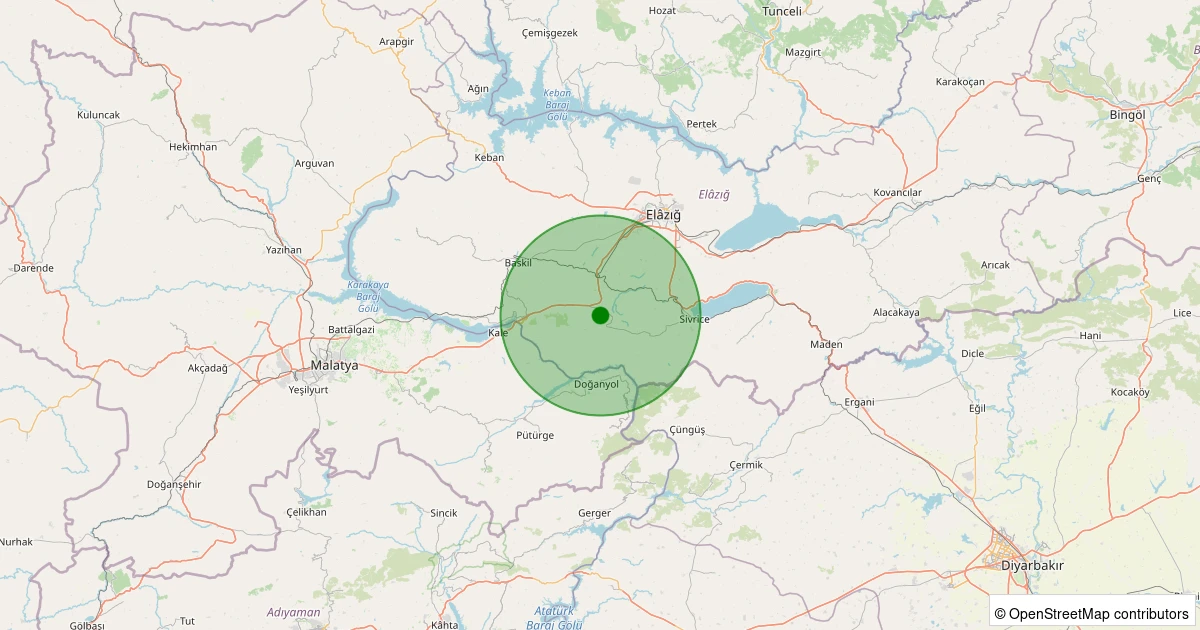 Son bir hafta içerisinde Elazığ şehri Merkez noktasından 100 km yarıçap içerisinde toplamda 176 deprem kaydedilmiştir. Bu depremlerden en büyüğü 3.7 büyüklüğünde ve en sığ odaklısı 0.00 kilometre derinlikte gerçekleşmiştir.