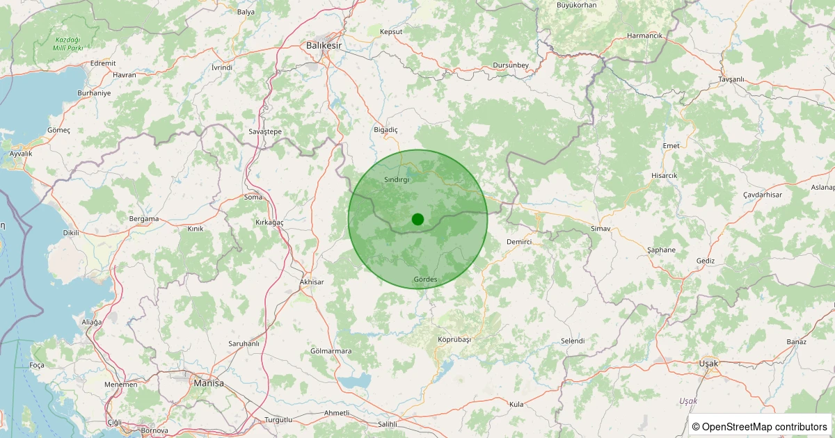 Son 7 gün içinde Sındırgı - Yüreğil/Alan noktasından 100 km yarıçap içerisinde meydana gelen diğer depremler:
