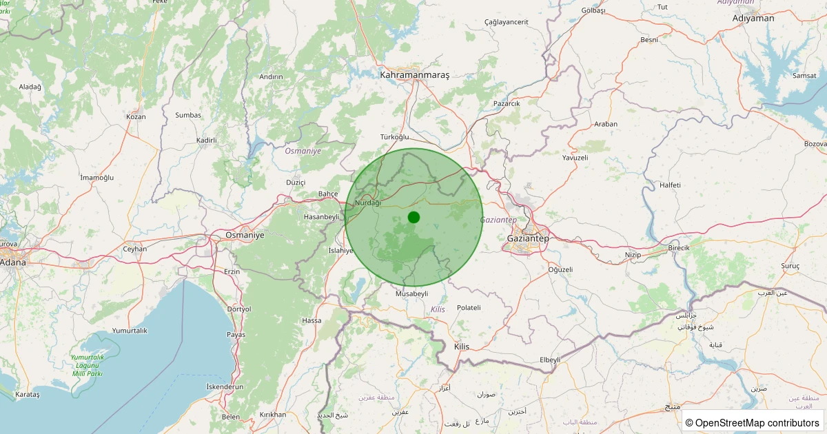 Son bir hafta içerisinde Gaziantep şehri Nurdağı noktasından 100 km yarıçap içerisinde toplamda 97 deprem kaydedilmiştir. Bu depremlerden en büyüğü 3.6 büyüklüğünde ve en sığ odaklısı 0.00 kilometre derinlikte gerçekleşmiştir.