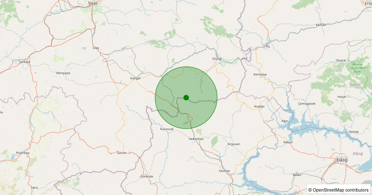 Son 7 gün içinde Kangal - Aktepe Köyü noktasından 100 km yarıçap içerisinde meydana gelen diğer depremler:
