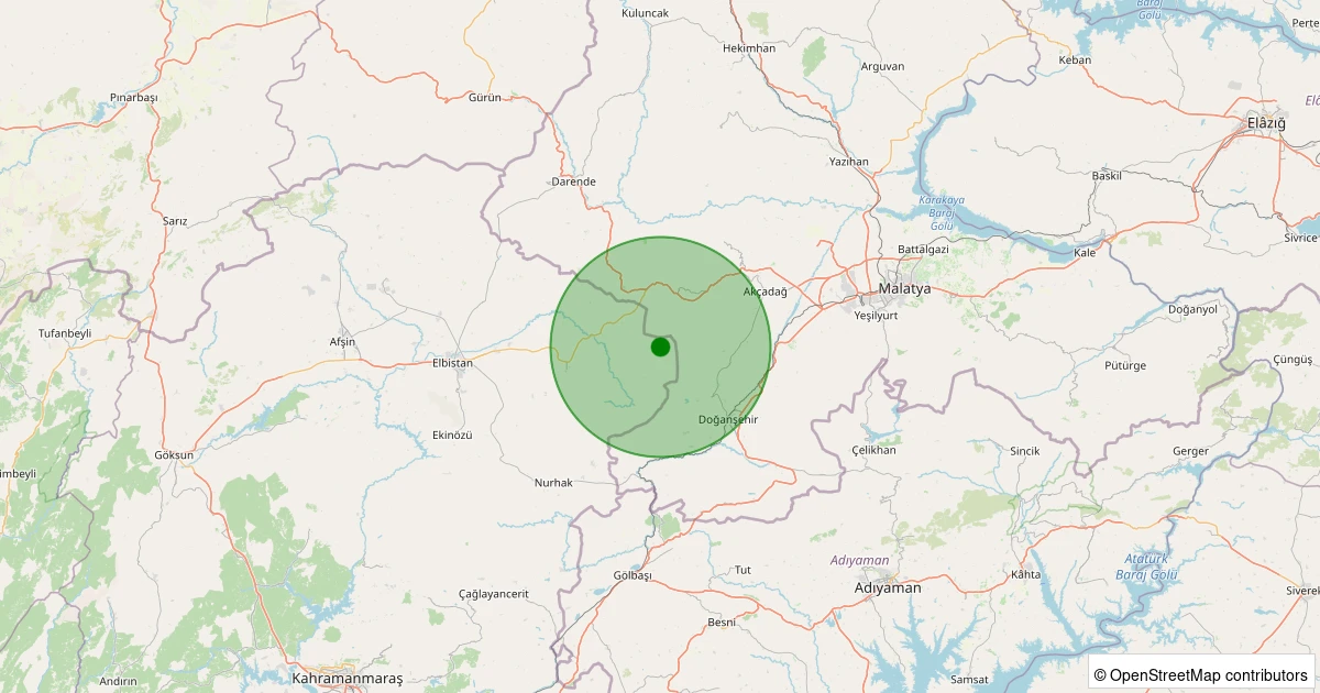 Son 7 gün içinde Akçadağ - Harunuşağı noktasından 100 km yarıçap içerisinde meydana gelen diğer depremler: