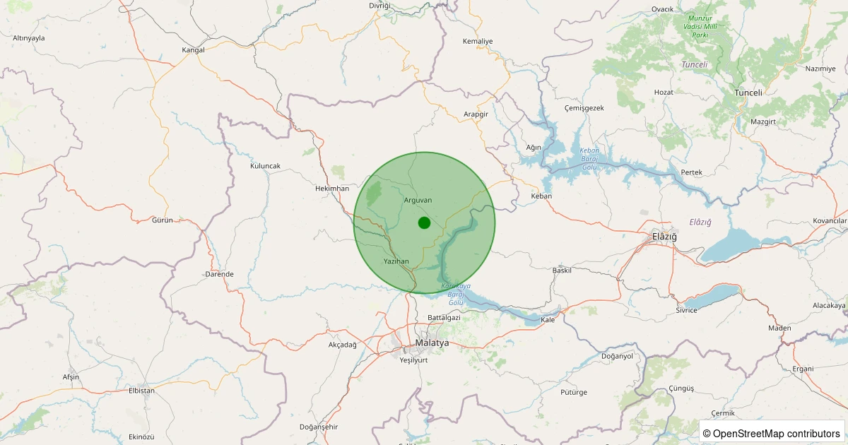 Son 7 gün içinde Arguvan - Aşağısülmenli Köyü noktasından 100 km yarıçap içerisinde meydana gelen diğer depremler: