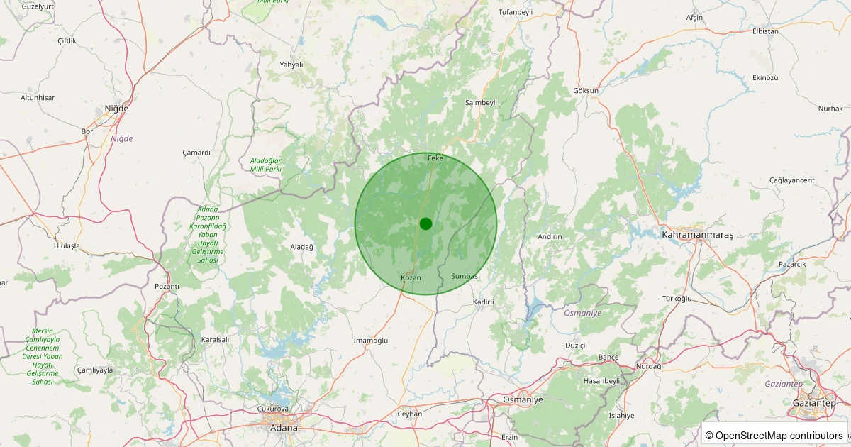 Son 7 gün içinde Kozan - Karabucak noktasından 100 km yarıçap içerisinde meydana gelen diğer depremler: