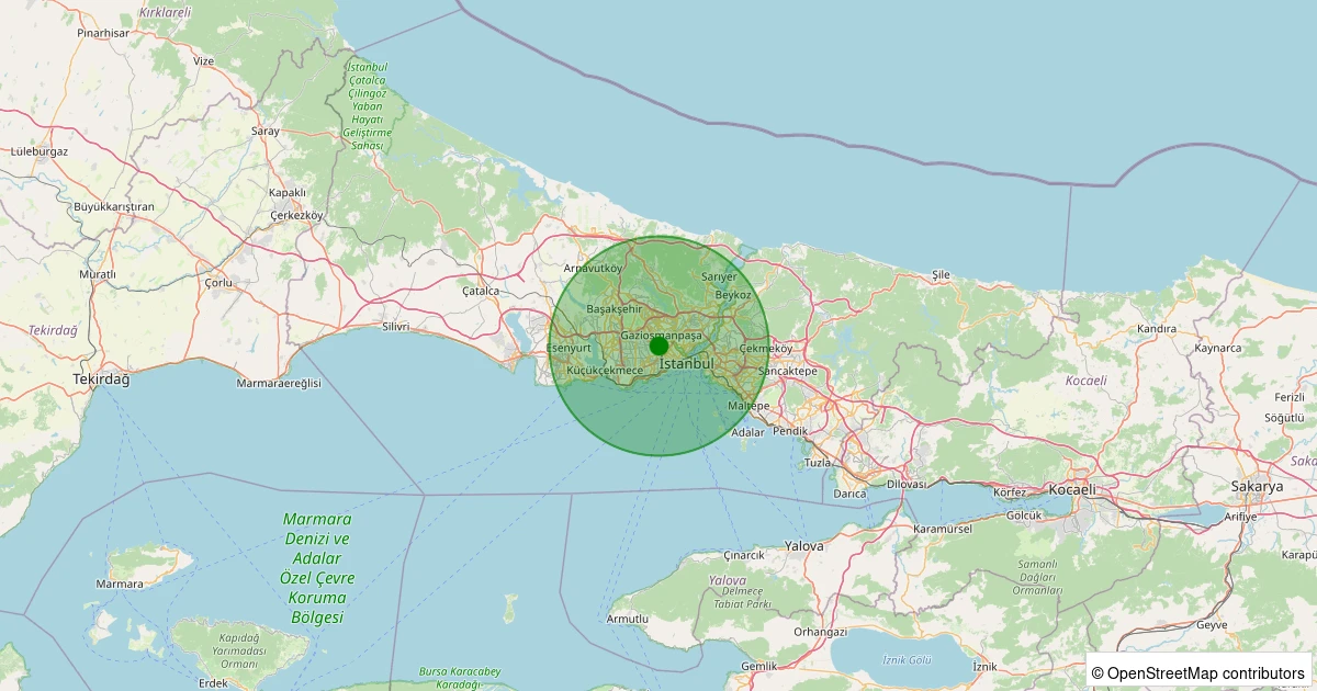 Son 7 gün içinde Bayrampaşa - Sağmalcılar noktasından 100 km yarıçap içerisinde meydana gelen diğer depremler:
