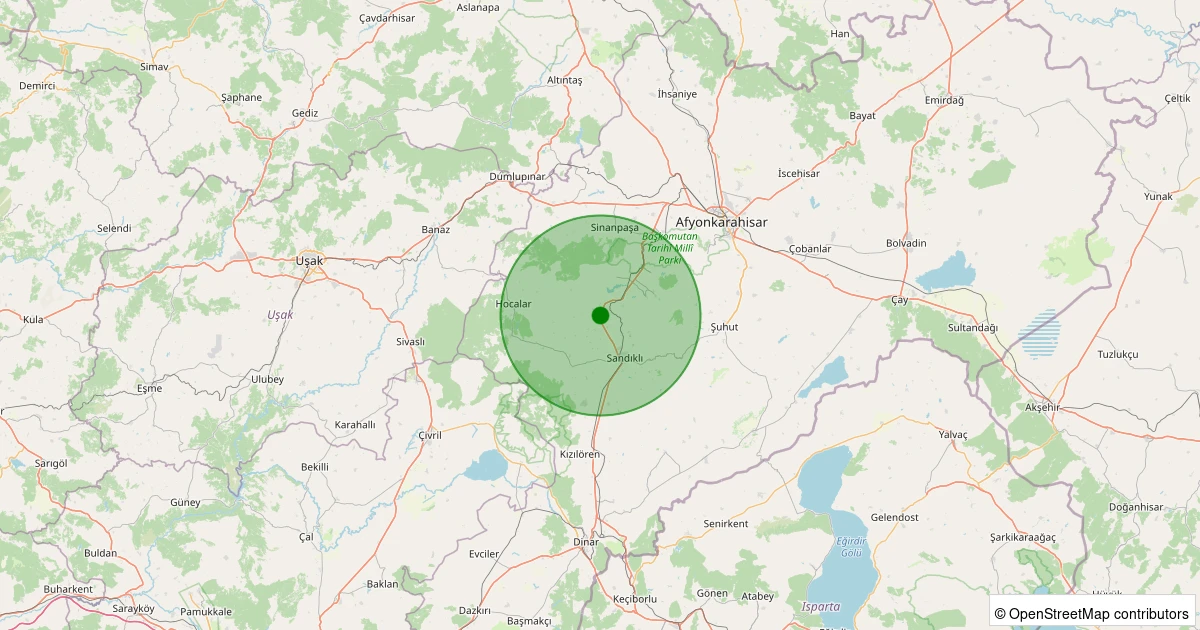 Son 7 gün içinde Sandıklı - Başağaç Köyü noktasından 100 km yarıçap içerisinde meydana gelen diğer depremler: