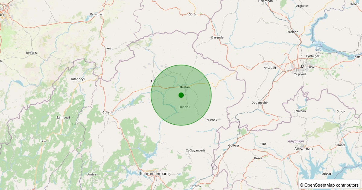 Son 7 gün içinde Elbistan - İğde Köyü noktasından 100 km yarıçap içerisinde meydana gelen diğer depremler: