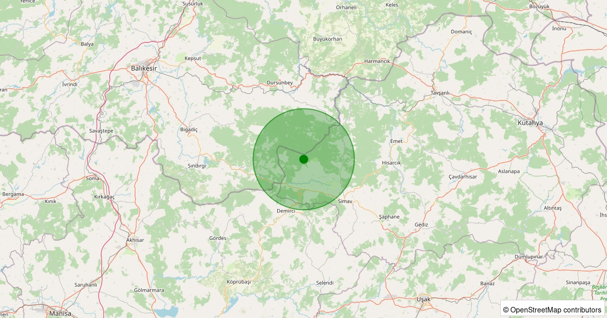 Son 7 gün içinde Simav - Kızılcık Köyü noktasından 100 km yarıçap içerisinde meydana gelen diğer depremler: