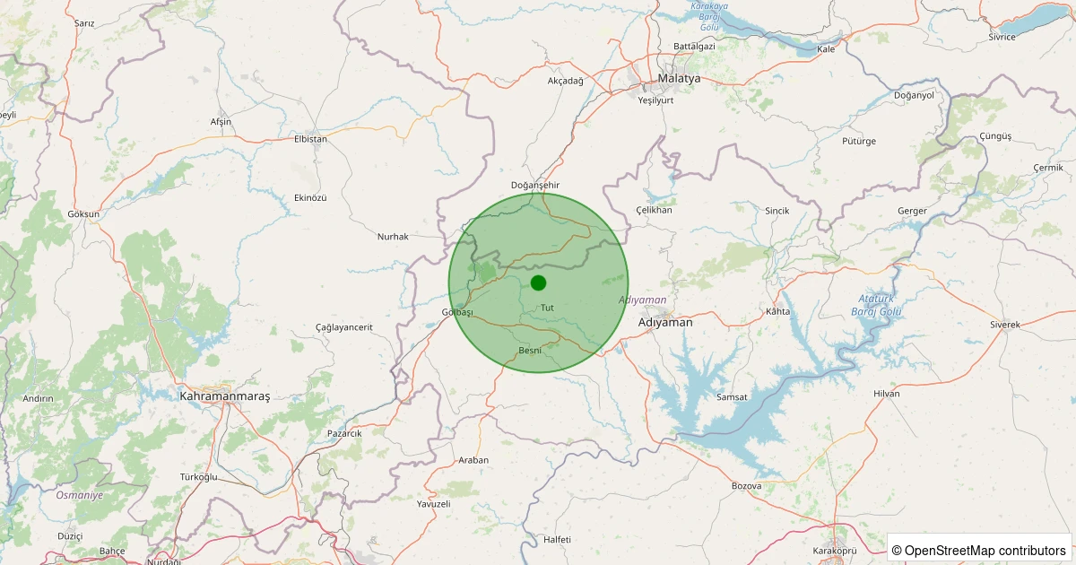 Son bir hafta içerisinde Adıyaman şehri Tut noktasından 100 km yarıçap içerisinde toplamda 275 deprem kaydedilmiştir. Bu depremlerden en büyüğü 3.7 büyüklüğünde ve en sığ odaklısı 0.00 kilometre derinlikte gerçekleşmiştir.