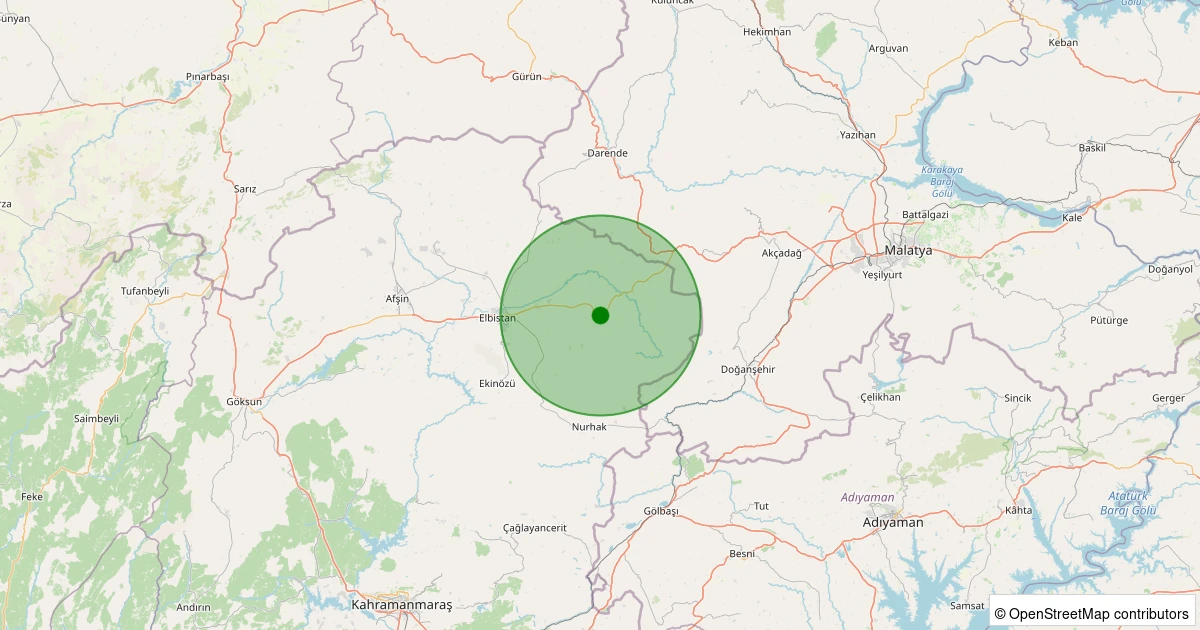 Son 7 gün içinde Elbistan - Gücük Köyü noktasından 100 km yarıçap içerisinde meydana gelen diğer depremler: