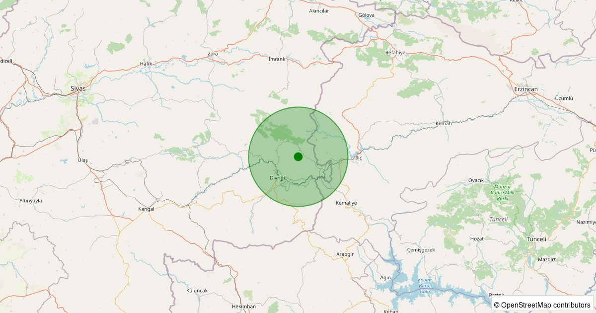 Son 7 gün içinde Divriği - Madenli Köyü noktasından 100 km yarıçap içerisinde meydana gelen diğer depremler: