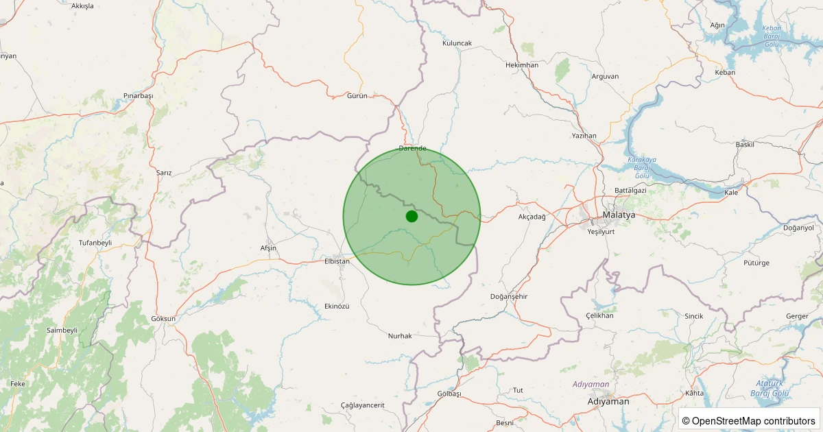 Son 7 gün içinde Elbistan - Yoğunsöğüt Köyü noktasından 100 km yarıçap içerisinde meydana gelen diğer depremler: