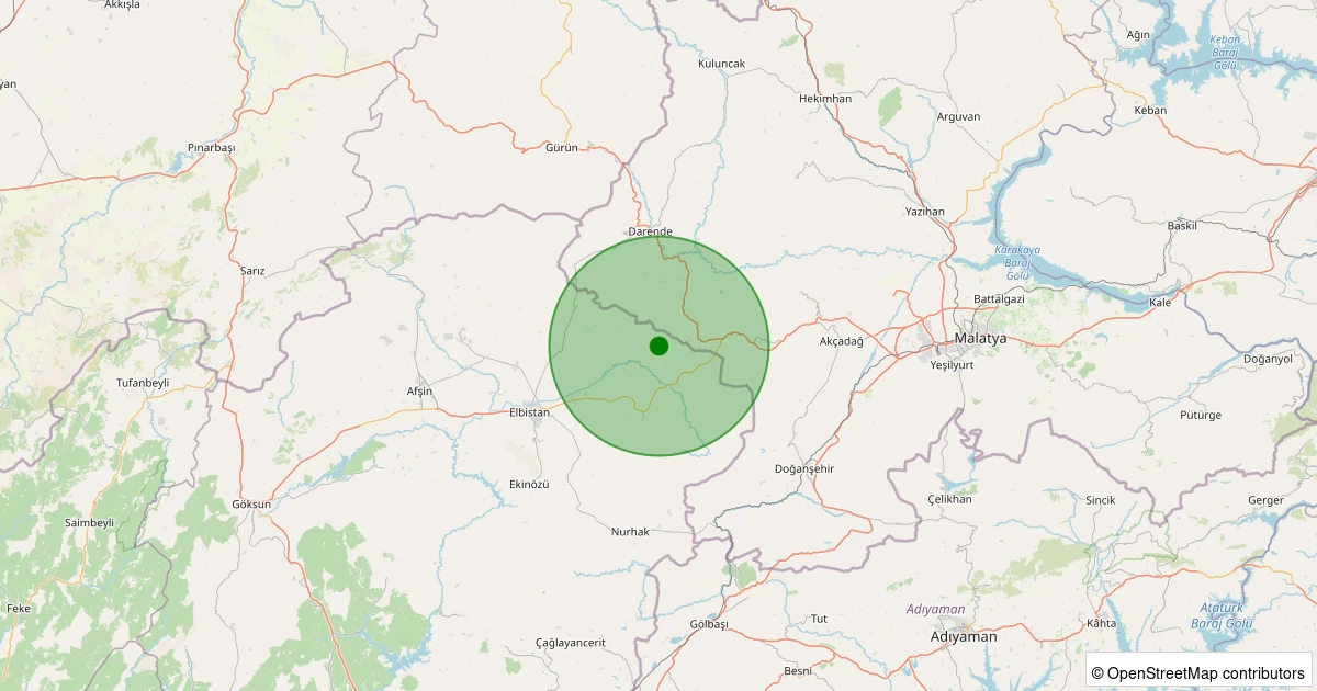 Son 7 gün içinde Elbistan - Yoğunsöğüt Köyü noktasından 100 km yarıçap içerisinde meydana gelen diğer depremler: