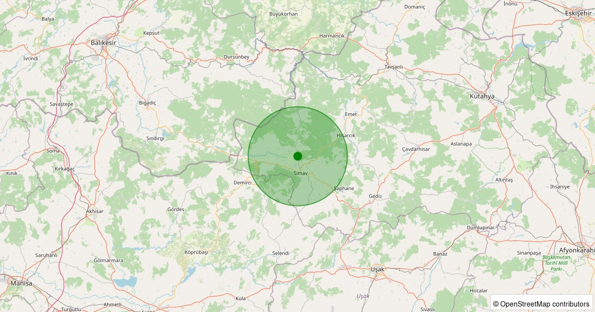 Son 7 gün içinde Simav - Naşa/Cumhuriyet noktasından 100 km yarıçap içerisinde meydana gelen diğer depremler:
