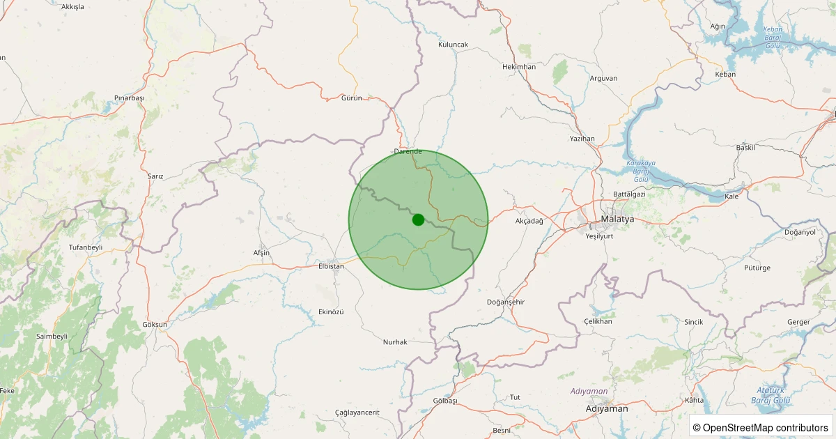 Son 7 gün içinde Elbistan - Yoğunsöğüt Köyü noktasından 100 km yarıçap içerisinde meydana gelen diğer depremler: