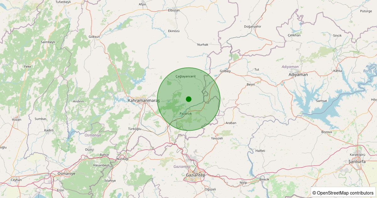 Son 7 gün içinde Pazarcık noktasından 100 km yarıçap içerisinde meydana gelen diğer depremler: