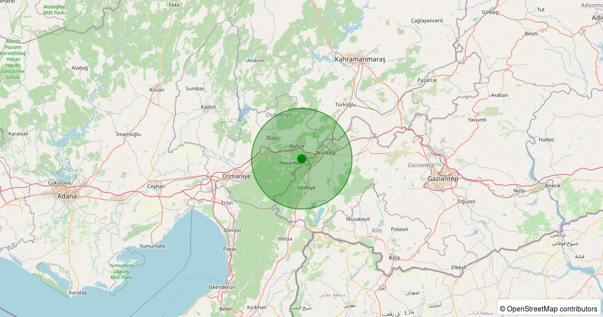 Son 7 gün içinde Bahçe - Kızlaç Köyü noktasından 100 km yarıçap içerisinde meydana gelen diğer depremler:
