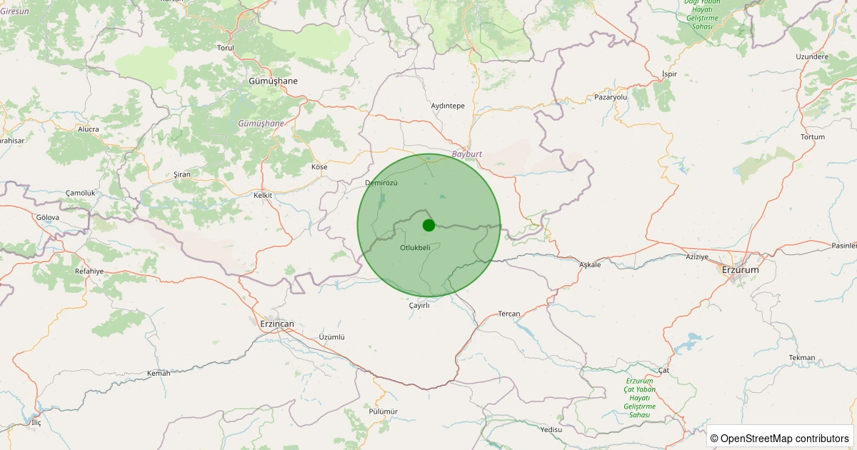Son 7 gün içinde Otlukbeli - Ağamçağam Köyü noktasından 100 km yarıçap içerisinde meydana gelen diğer depremler:
