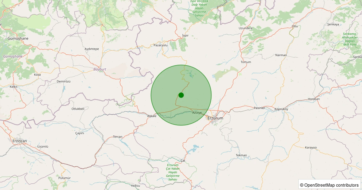 Son 7 gün içinde Aziziye - Sorkunlu noktasından 100 km yarıçap içerisinde meydana gelen diğer depremler: