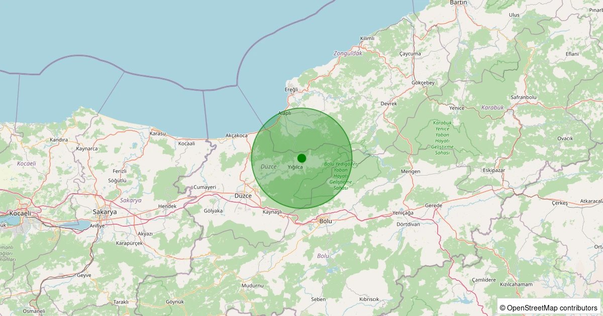 Son 7 gün içinde Yığılca - Aksaklar Köyü noktasından 100 km yarıçap içerisinde meydana gelen diğer depremler: