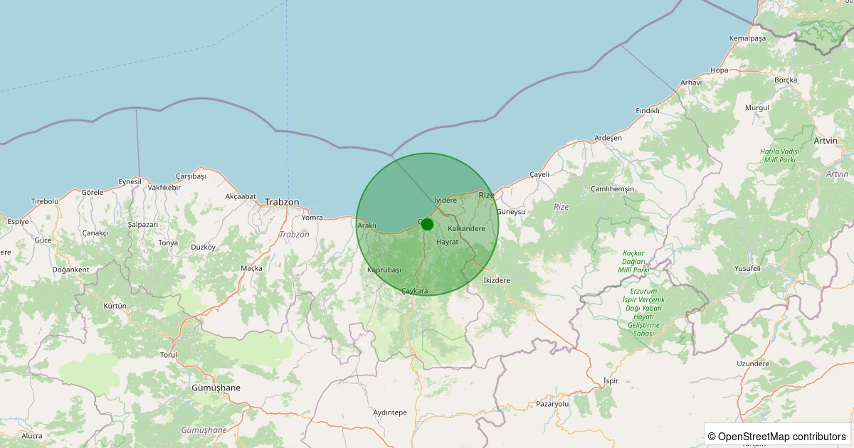 Son bir hafta içerisinde Trabzon şehri Of - Kıyıboyu Köyü noktasından 100 km yarıçap içerisinde toplamda 14 deprem kaydedilmiştir. Bu depremlerden en büyüğü 3.8 büyüklüğünde ve en sığ odaklısı 6.81 kilometre derinlikte gerçekleşmiştir.