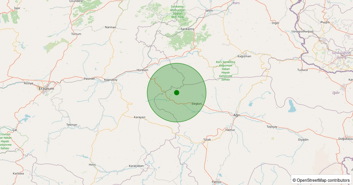 Son 7 gün içinde Eleşkirt - Tahir Köyü noktasından 100 km yarıçap içerisinde meydana gelen diğer depremler: