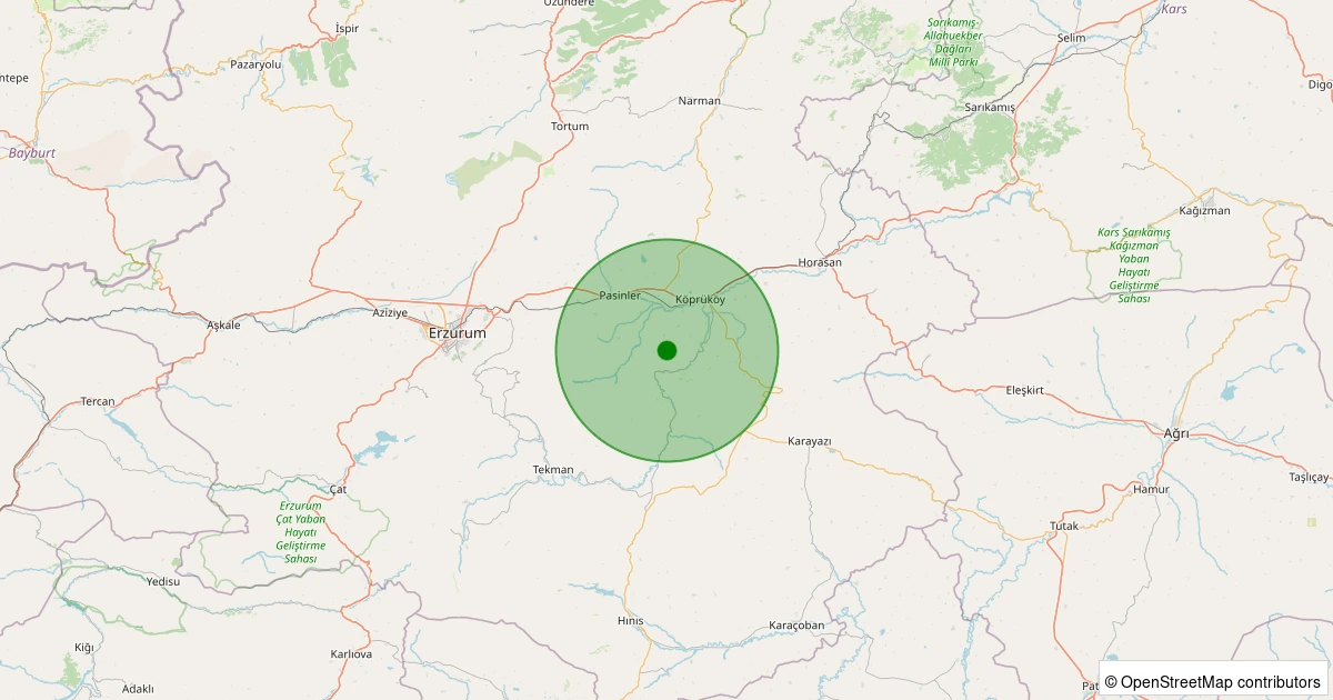 Son 7 gün içinde Pasinler - Taşlıyurt noktasından 100 km yarıçap içerisinde meydana gelen diğer depremler: