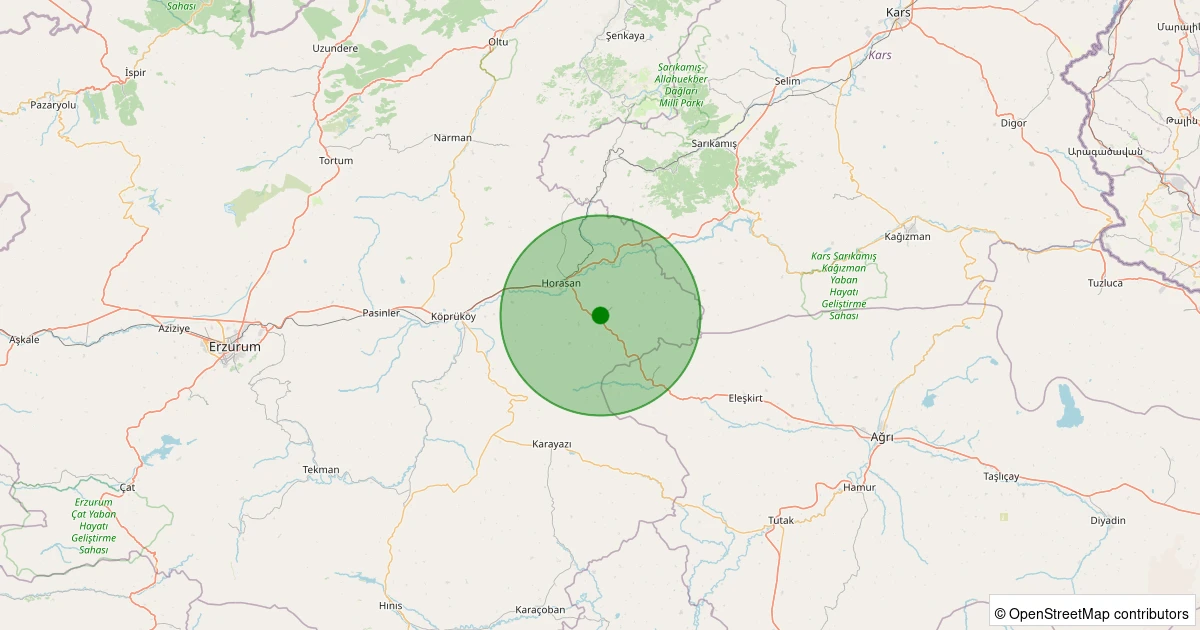 Son 7 gün içinde Horasan - Velibaba noktasından 100 km yarıçap içerisinde meydana gelen diğer depremler: