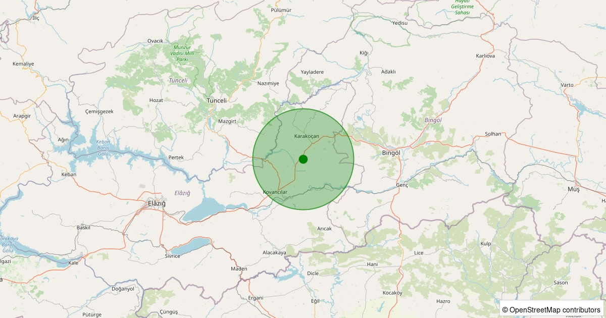 Son 7 gün içinde Karakoçan - Gözerek Köyü noktasından 100 km yarıçap içerisinde meydana gelen diğer depremler: