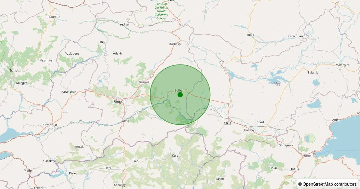 Son 7 gün içinde Solhan - Şimşirpınar Köyü noktasından 100 km yarıçap içerisinde meydana gelen diğer depremler: