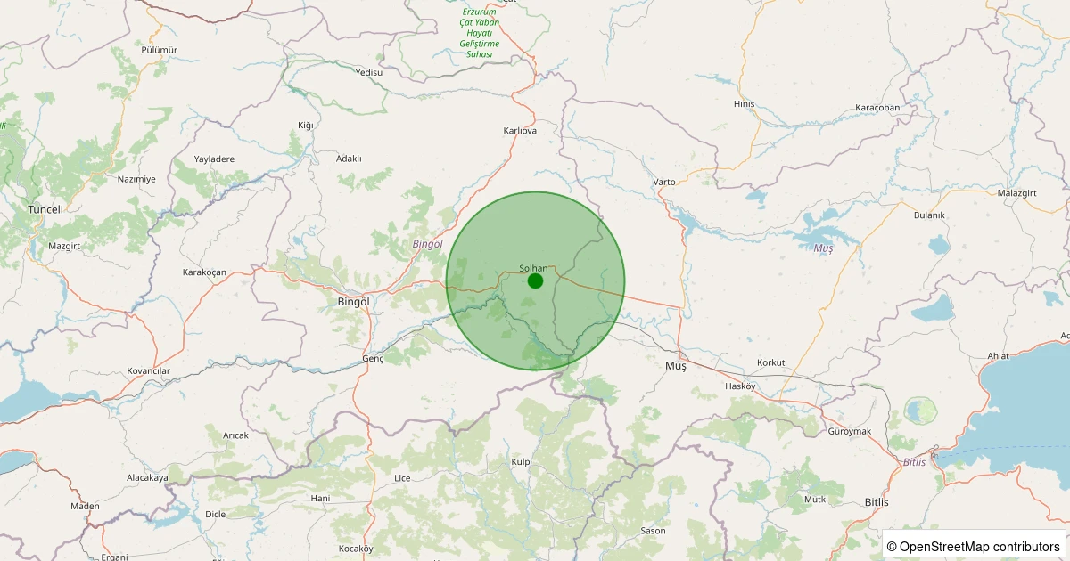 Son 7 gün içinde Solhan - Şimşirpınar Köyü noktasından 100 km yarıçap içerisinde meydana gelen diğer depremler: