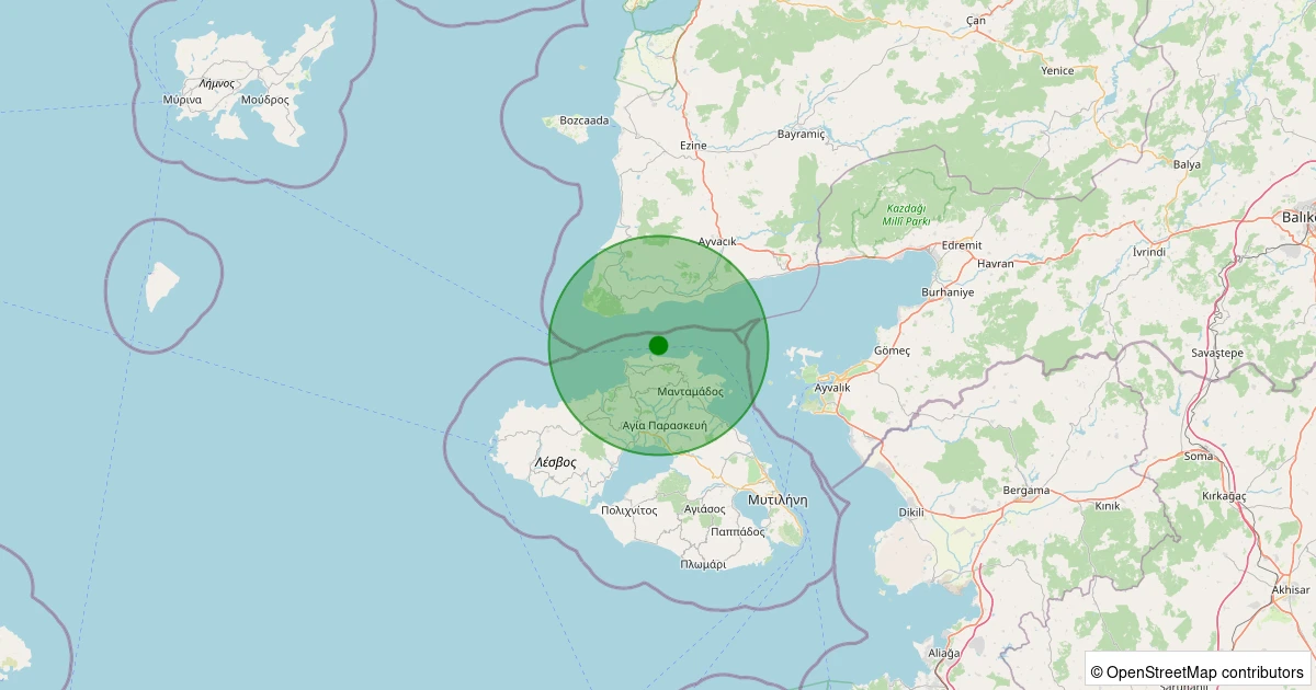 Son 7 gün içinde MIDILLI noktasından 100 km yarıçap içerisinde meydana gelen diğer depremler: